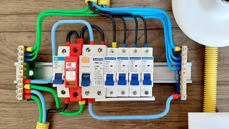 - Disjuntores, quadros de distribuição e aterramento